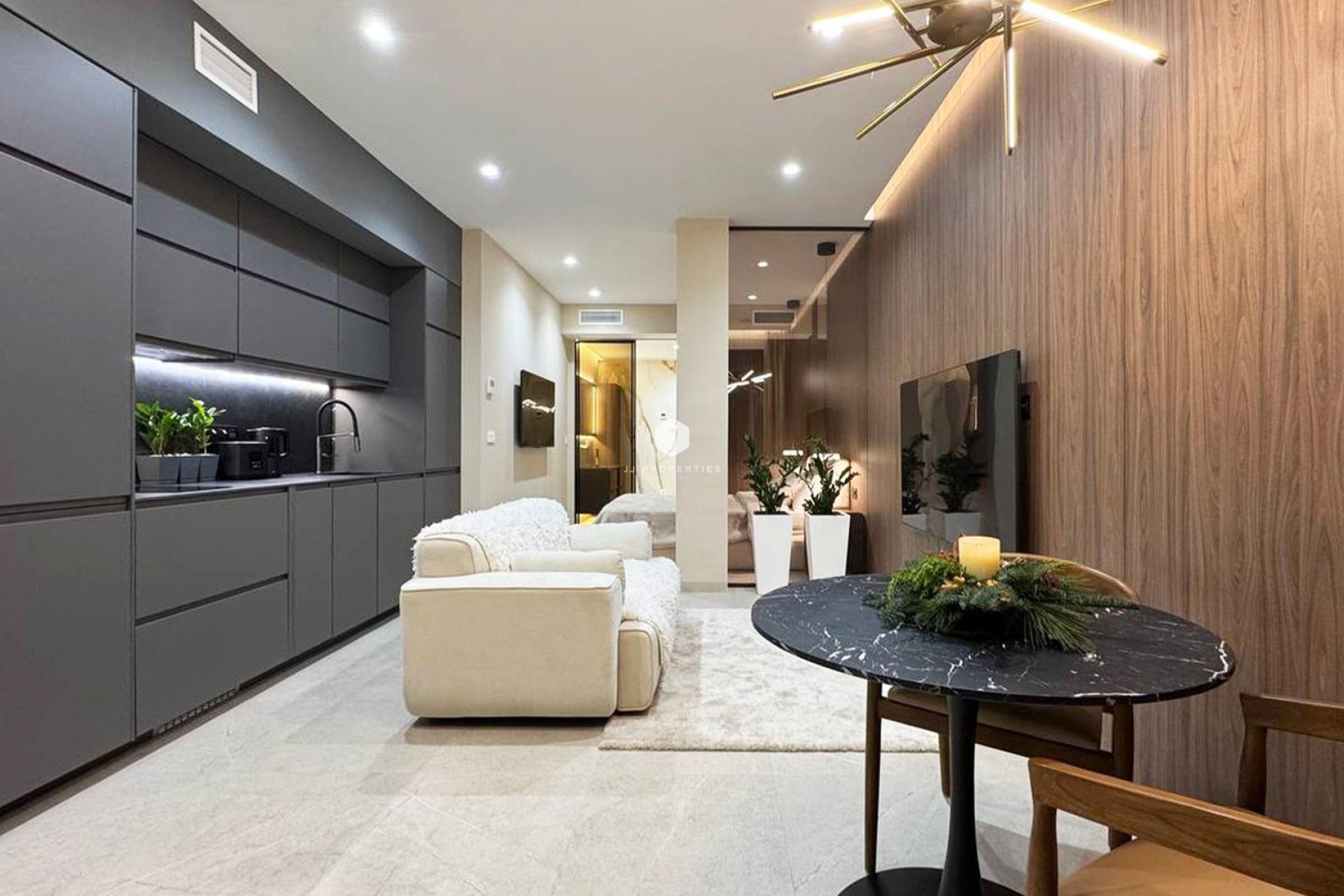 Stylish 1-bedroom apartment of 45 m² in the heart of Torrevieja, just 250 meters from Los Locos Beach. The apartment offers a bright living area with panoramic floor-to-ceiling windows, a fully equipped modern kitchen, and a comfortable bedroom with built-in wardrobe and elegant finishes. The bathroom features a rainfall shower, stone washbasin, and underfloor heating. Climate control, LED lighting, and a private terrace complete this sophisticated Mediterranean retreat—ideal as a holiday home or a permanent residence under the Spanish sun.