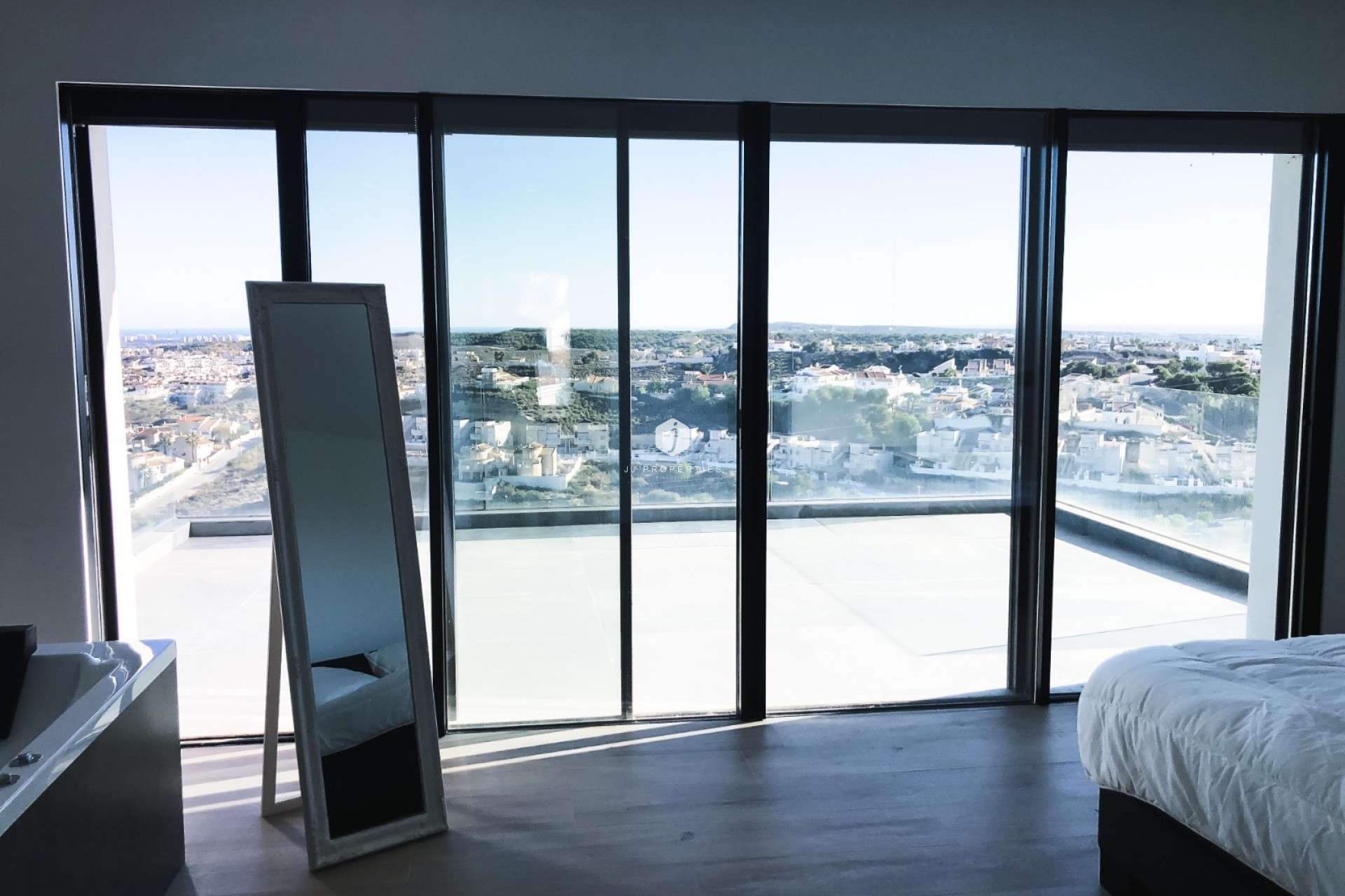 - Heated infinity pool - 40 sq.m - Elevator from the garage to the top floor - Underfloor heating throughout. - Air condition - Master bedroom with jacuzzi and .private bathroom, dressing room - Panoramic views from Santa Pola to the Mar Menor - Independent 2 bedrooms 1 bathroom .guest apartment - Fully automated security shutters - Alarm security system inside and out - High quality kitchen. - Fully furnished